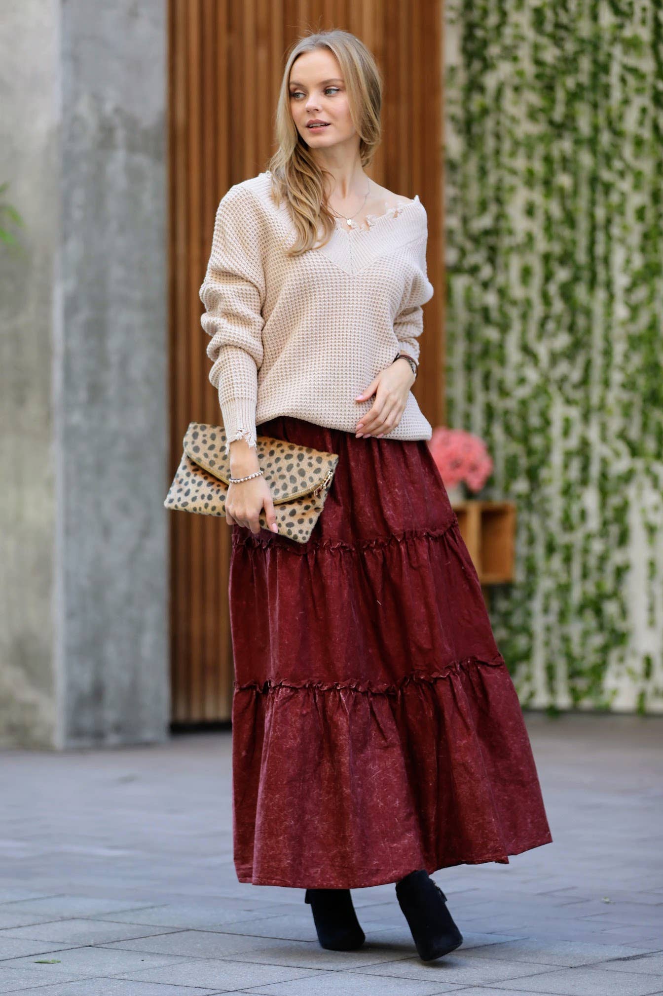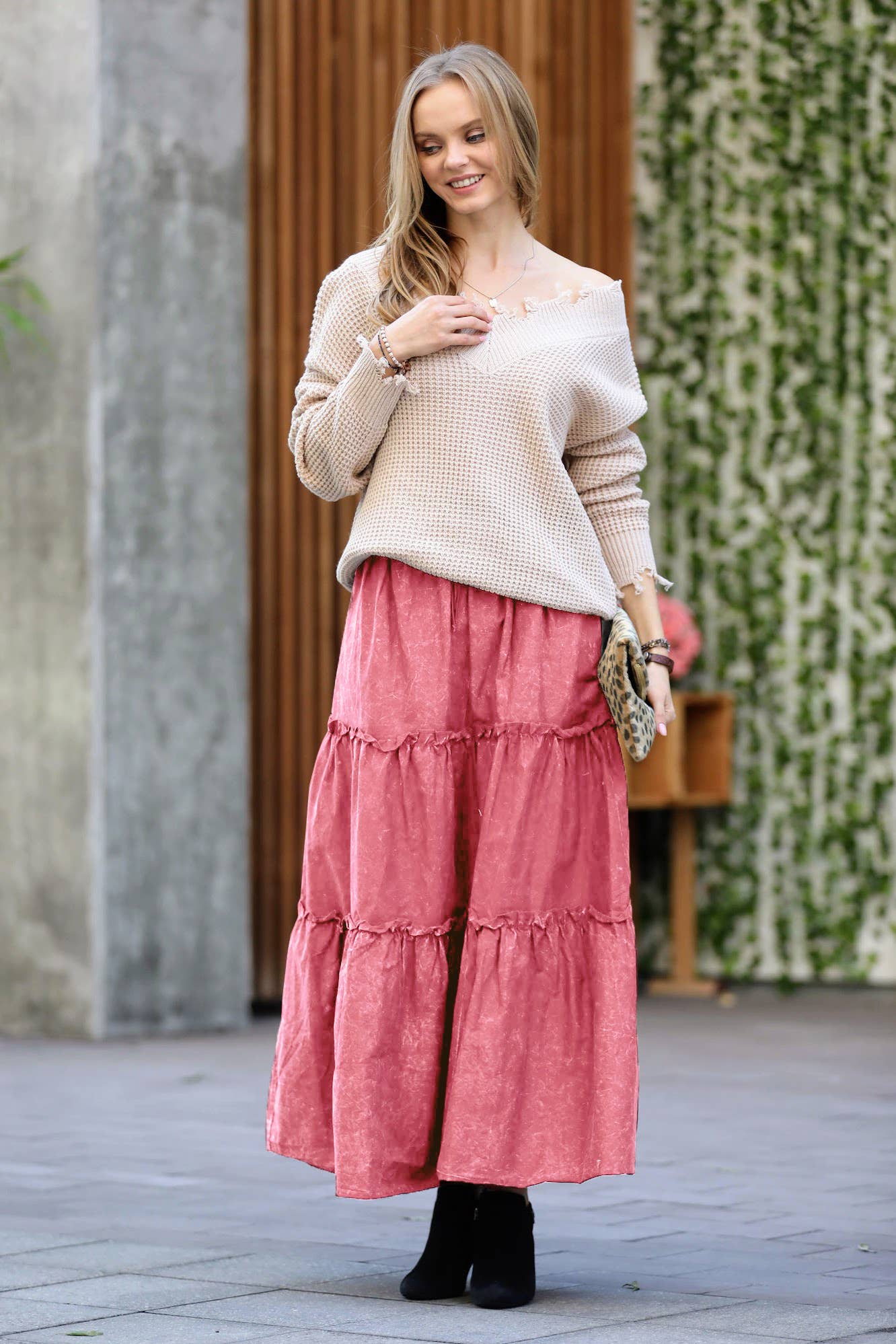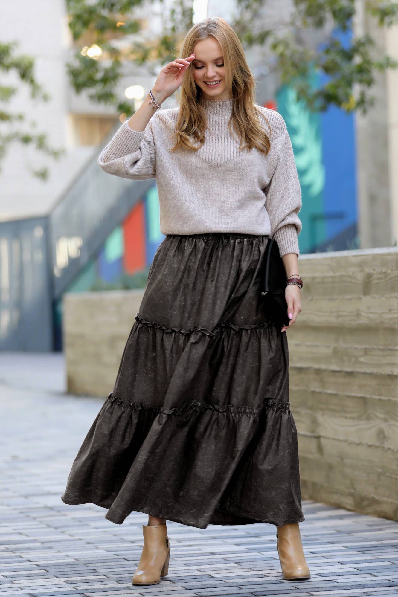 Vintage Washed Tiered Skirt