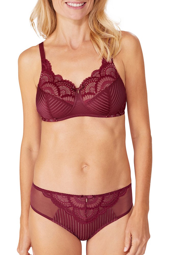 Dark Berry/Sand Add lavish luxe and rich lace detailing to your wardrobe, with our timeless Karolina collection - now available in a deep red color update