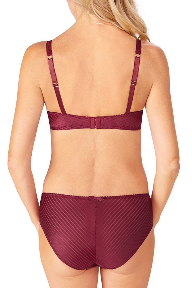 • Fan lace on the cups and band, and shiny hide and seek stripe fabric are a visual treat, like nothing you'll see in other brands