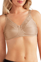 Nancy is a classic, easy-fitting bra featuring a floral lace along the neckline for a touch of elegance in a comfortable everyday bra. It's ideal for fuller figures - the size range goes up to a 52G. The breathable fabric cup pockets helps wick away moisture to keep you cool and dry