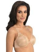 There are front close bras, and there are minimizers. Now the Meryl Front Close Minimizer bra, also a back and side smoother, is truly a unique all in one solution! Slip into your bra conveniently and easily with a unique slide & click front closure. She minimizes, shapes and smooths with a deep front plunge for your lowest cut necklines. Reduce bust line by up to an inch while maintaining and enhancing your natural shape. Ultra comfort & support from plush cushioned underwires and close set straps that prevent slipping and stay comfortably in place. Fully adjustable T-back eliminates bulges and smooths and supports the back and sides. European Guipure lace appliques and fine satin details enhance the luxurious feel.
