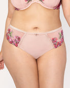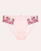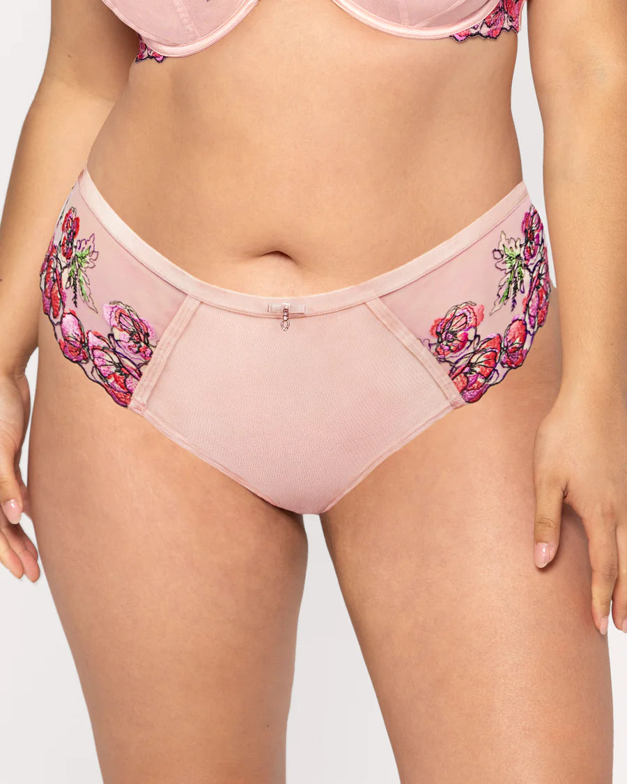 Experience enchanting elegance with one-of-a-kind design in our new strappy back brief. Sheer mesh and multicolor lush embroidery details featuring gorgeous shades of pinks, intricate floral embroidery and sexy strappy back detail and delicate charm. Revel in the exquisite craftsmanship and attention to detail that sets this new plus size panty apart from the rest. Because you deserve the best. Pair with our Lush Embroidery Unlined Full Coverage Balconette for a look that defines timeless chic.
