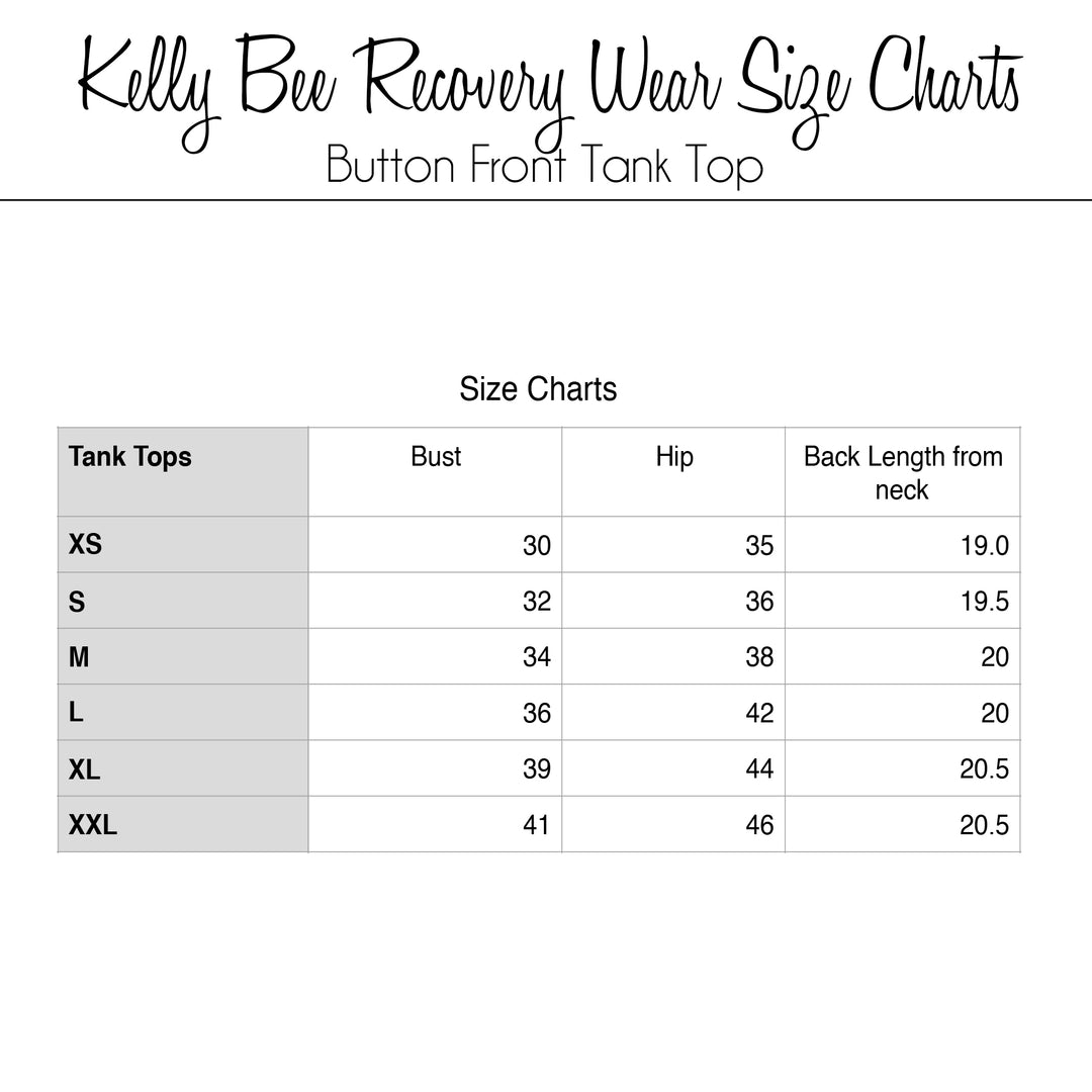 Pre-ordered item may arrive within 7 days . This mastectomy recovery tank top is a comfortable way to manage drains post mastectomy, or any other surgery that may require them. Leave the house with your drains safely hidden. It is a great mastectomy recovery or breast cancer gift. This tank top is so soft and lightweight. It is perfect to wear on it’s own or under your own button down or zip up shirts. Order your normal size for a more fitted look or a size up for a looser fit. You can even go a size down for a snug fit and wear instead of a mastectomy bra, these have a nice stretch to them