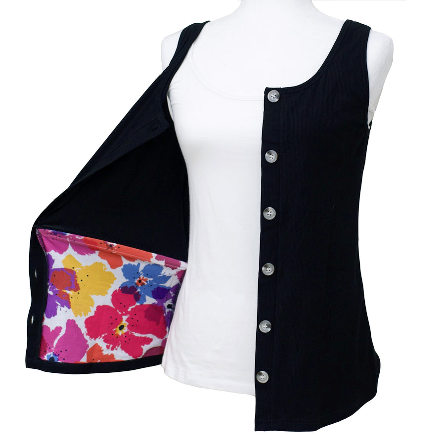 Mastectomy Recovery Button Down Tank with Surgical Drain Pockets