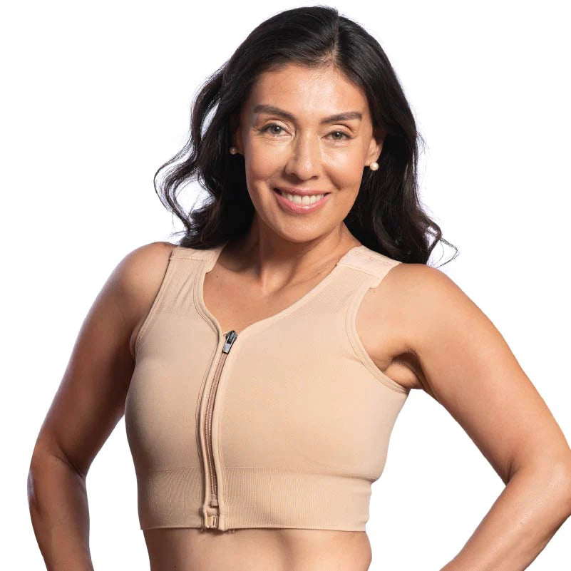 Post-Surgical: Post-surgical bra & binder that you can use with prosthetics, padding, pressure pads ice, during chemotherapy (chemo-port access), for axilla compression and comfort.