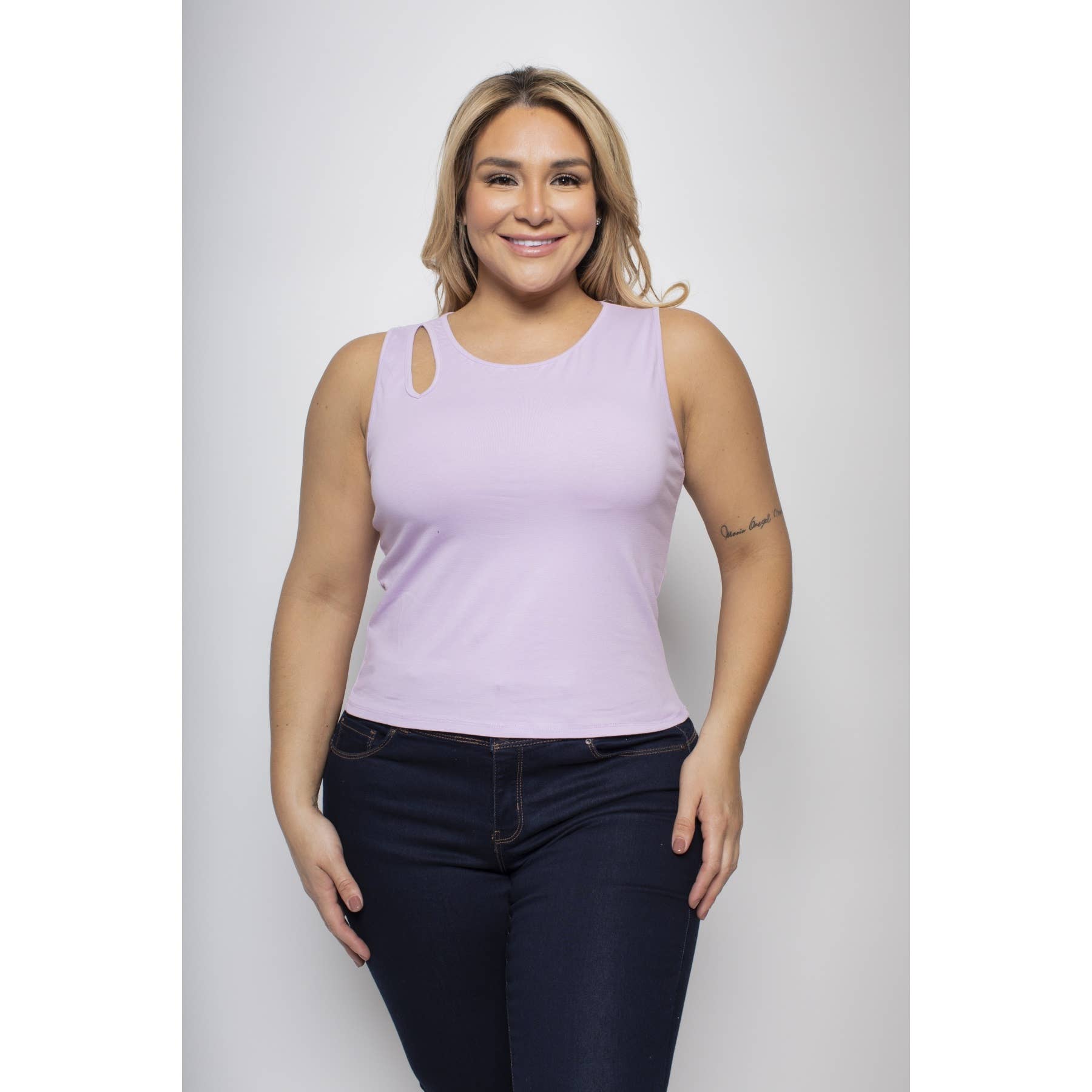 PLUS SIZE CUT OUT SHOULDER TANK TOP. 92% COTTON, 8% SPANDEX.