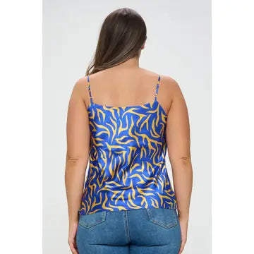 Satin Exotic Zebra Cowl Neck Cami Top