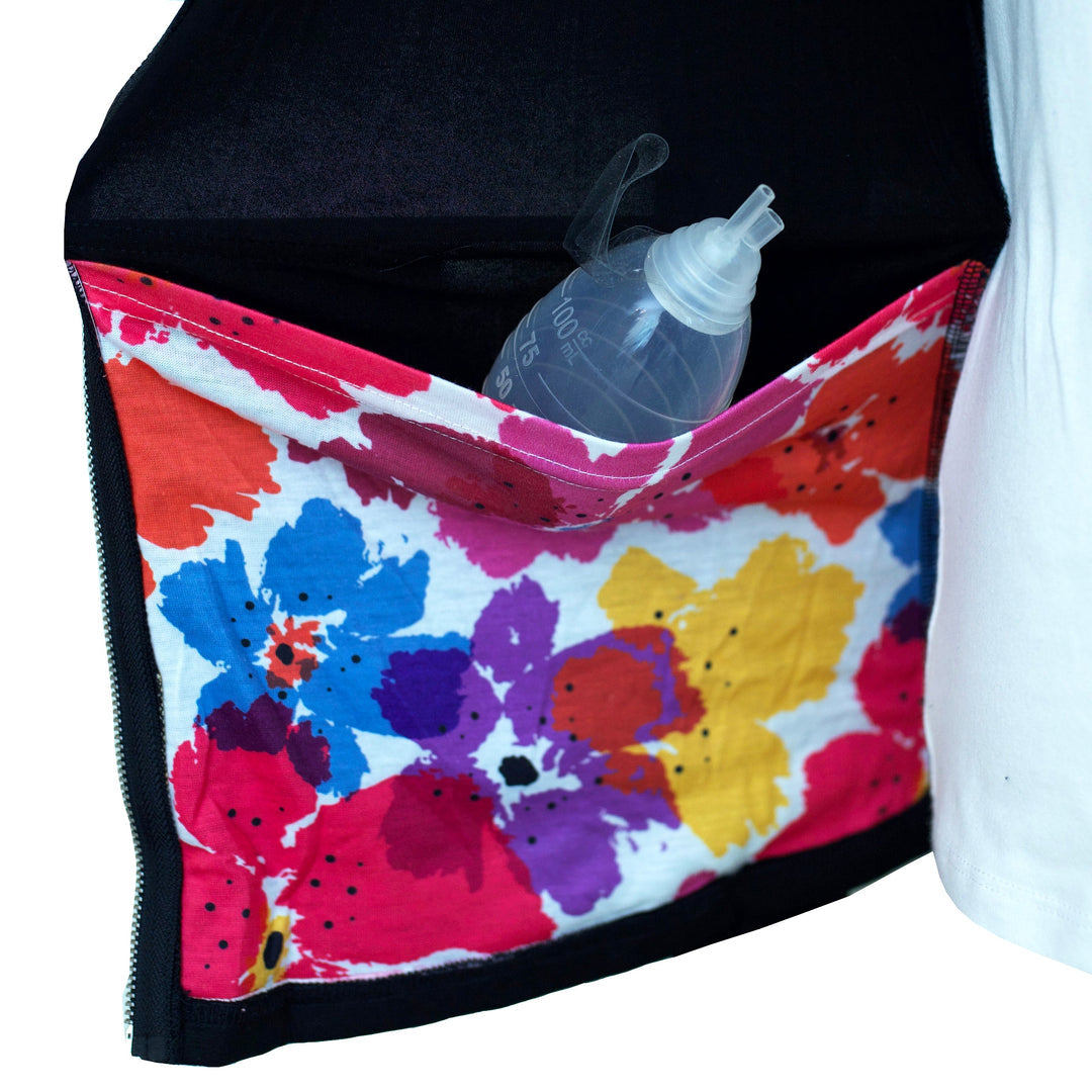 This button down top has two large pockets that can hold multiple drains on each side. There is one large pocket inside each front flap of the top. These pajamas are lightweight, super soft and button up since you will be unable to lift your arms after surgery.