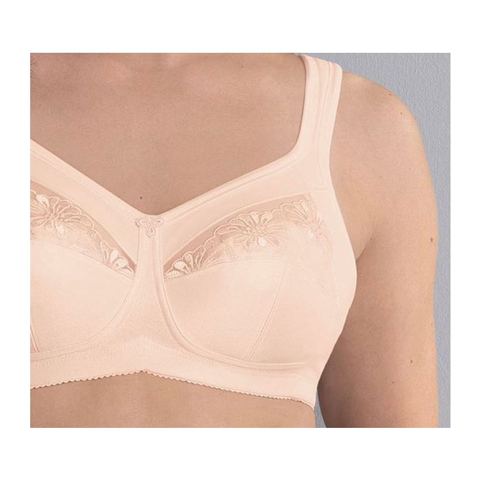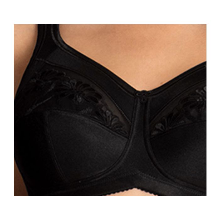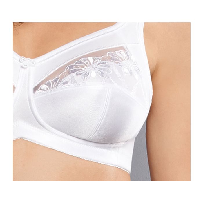 Style 5349X .Pleasant on the skin and a dream in voile embroidery! This is the SAFINA specialist bra that with its wide, padded comfort straps also provide unbelievable support. The breast form pockets on both sides are made of cotton, the upper cup is highlighted with transparent embroidery. Style 5349X