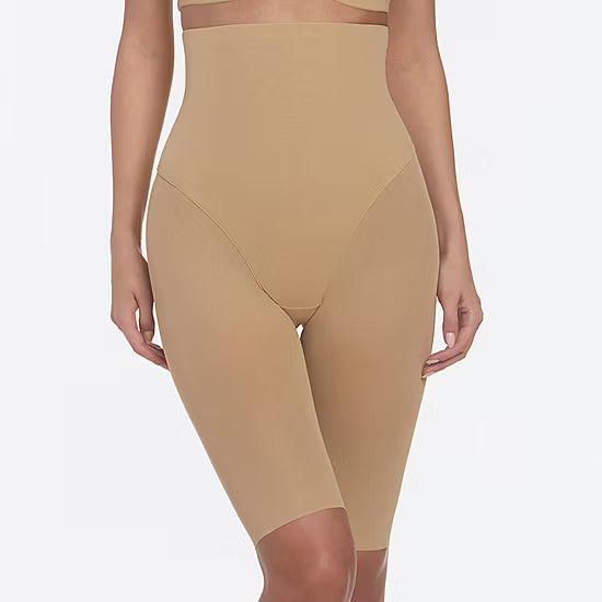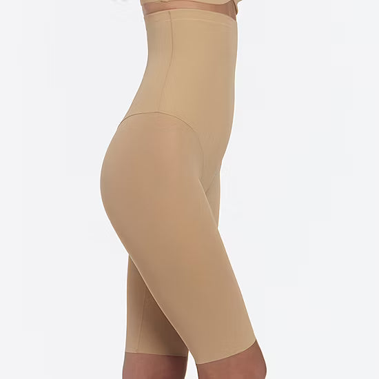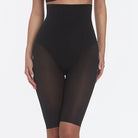 This modern, lightweight and breathable high waist thigh shaper provides firm control and comfort, making it the perfect balance of beauty and functionality. It targets necessary areas with its sleek power mesh, while the sheer mesh creates a flattering silhouette on both the front and back. The high waist has a smooth finish at the top and features lush interior elastic, ensuring comfort and stability. Additionally, the leg openings have free edges for a smooth and chafe-free fit. With a 100% cotton gusset, this shapewear offers a refined and comfortable solution for slimming and shaping from the rib cage to just above the knee