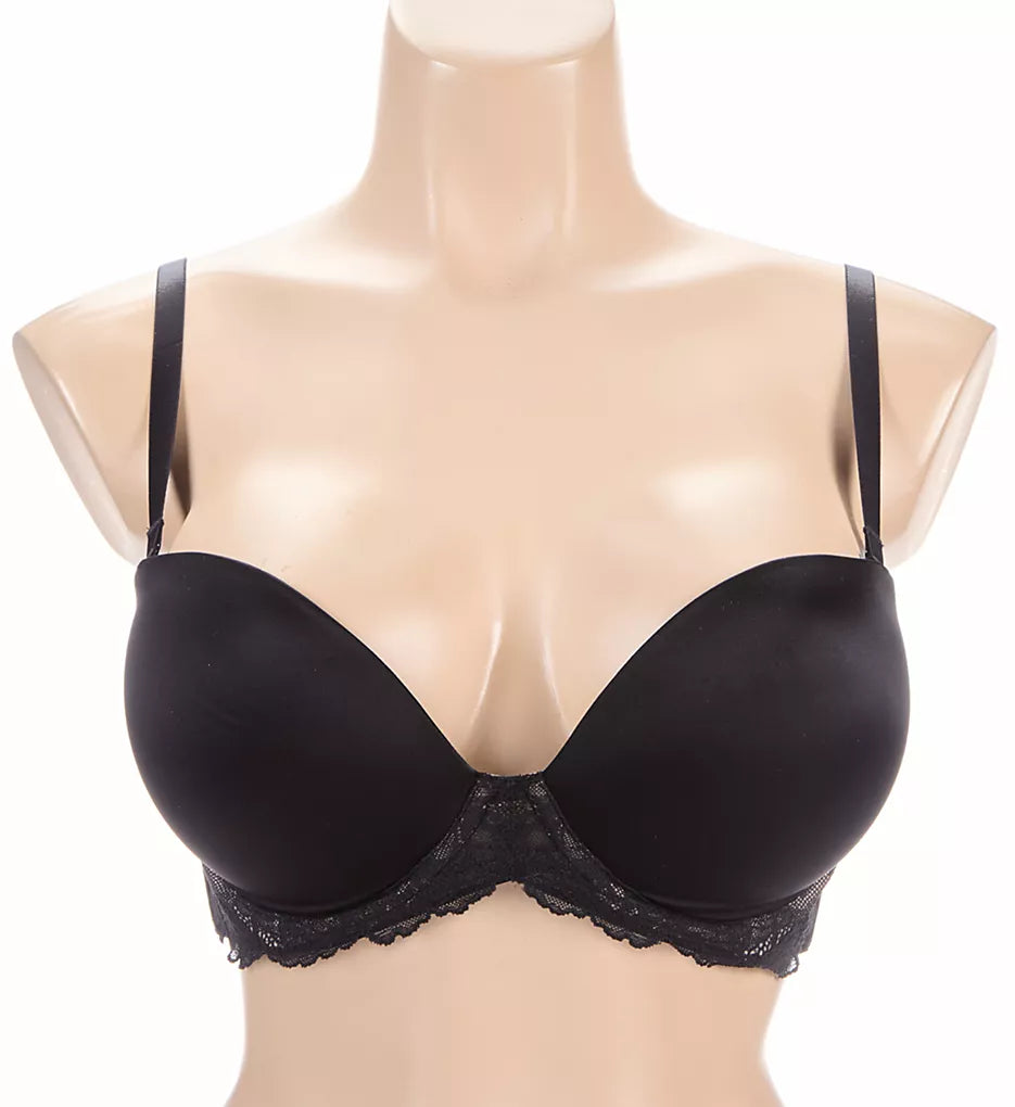 The Wacoal Self-Assured Strapless Push-Up Bra lifts with gradual padding and has a deep cut neck for easy wear with a plunging neckline and has silicone grip edges from front to back for secure bandeau wear. Wacoal's Self-Assured Strapless Push-Up Bra is made of nylon/spandex.