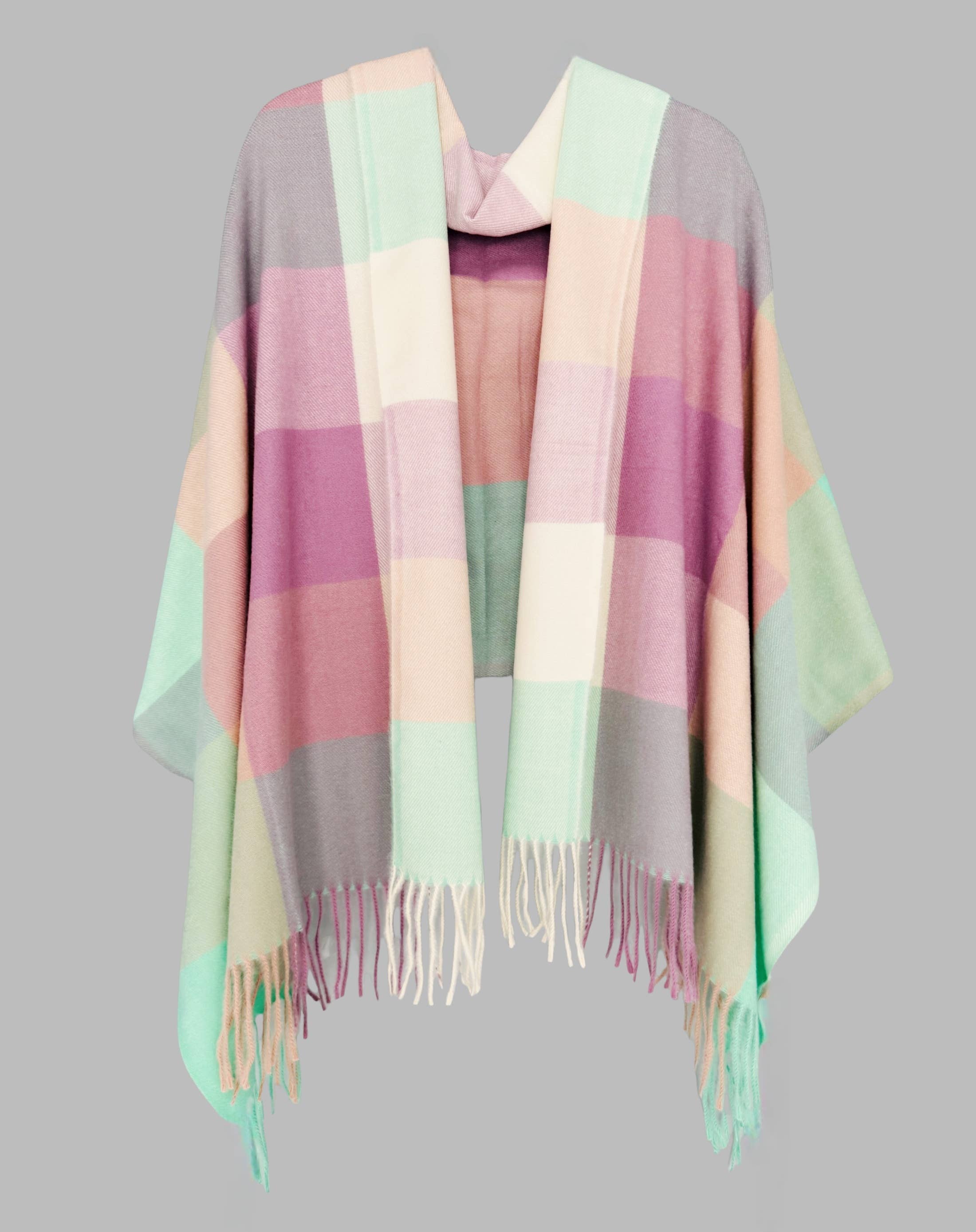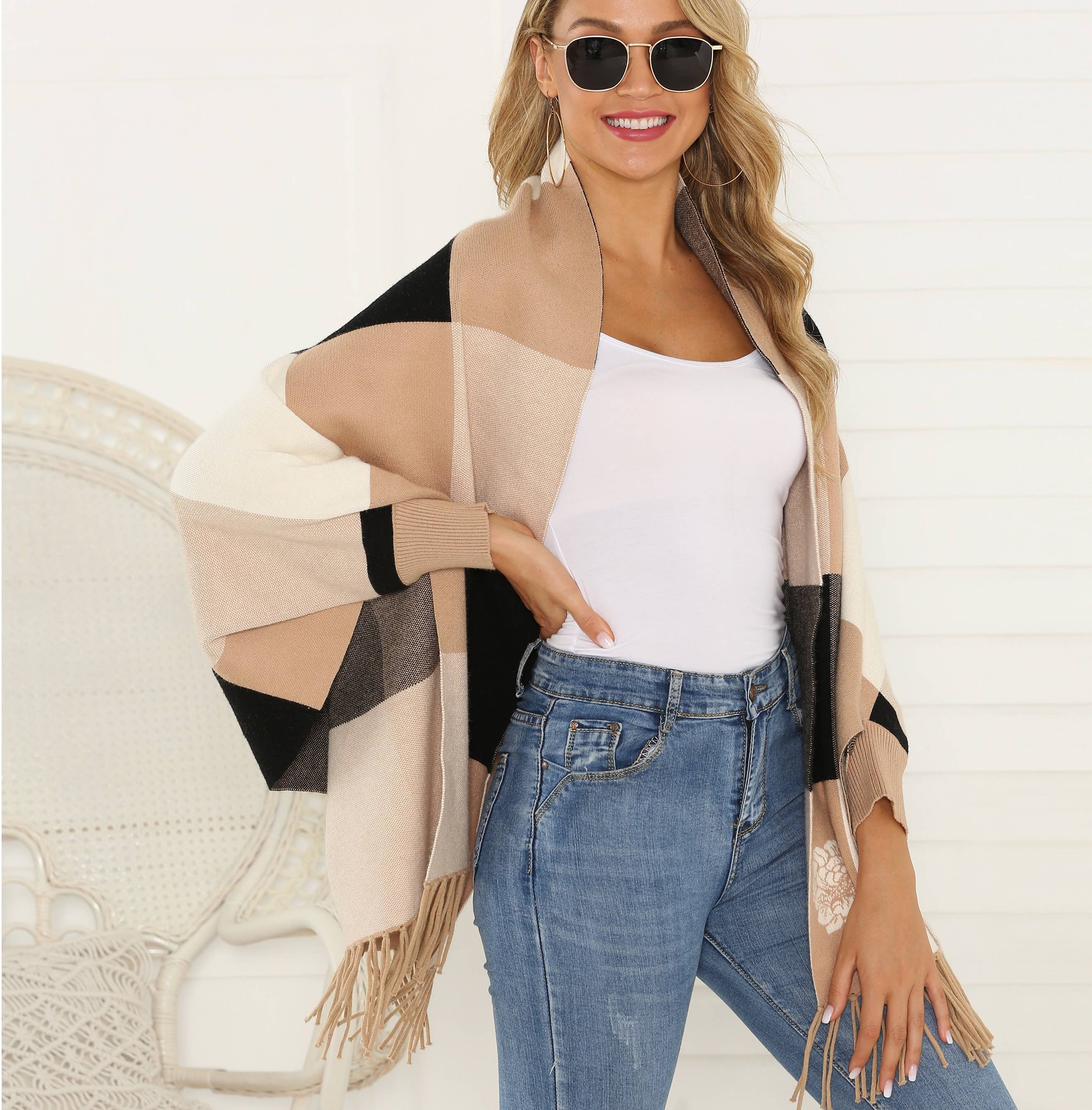 Color Block Fringe Hem Batwing Sleeve Cardigan
