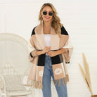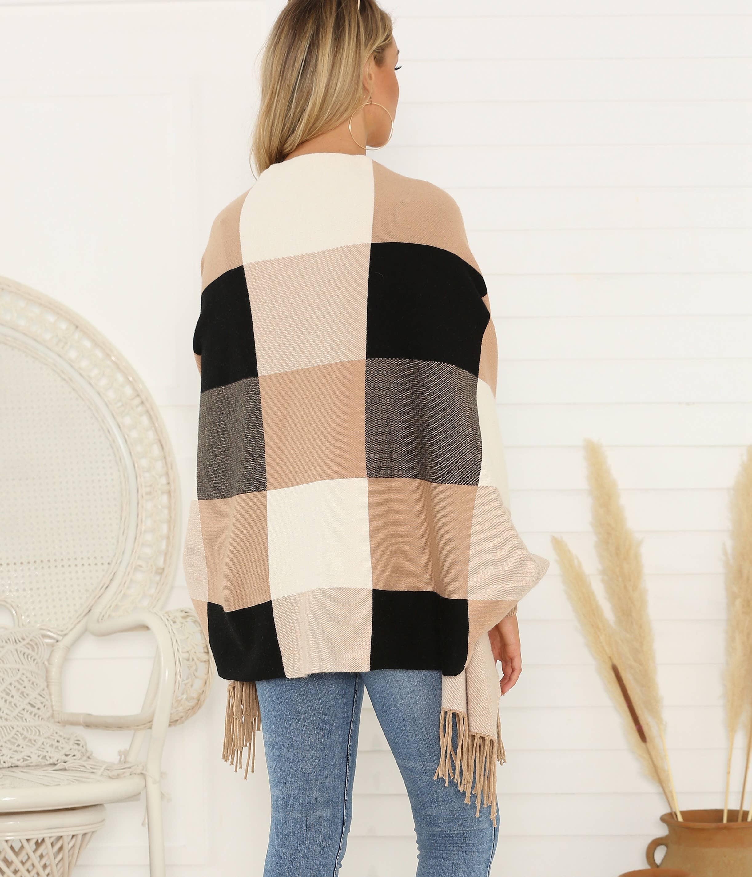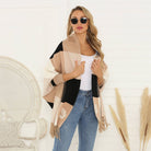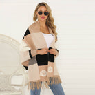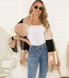 Color Block Fringe Hem Batwing Sleeve Cardigan