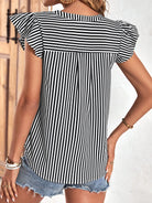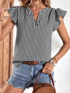 VCAY Striped Notched Neckline Butterfly Sleeve Blouse