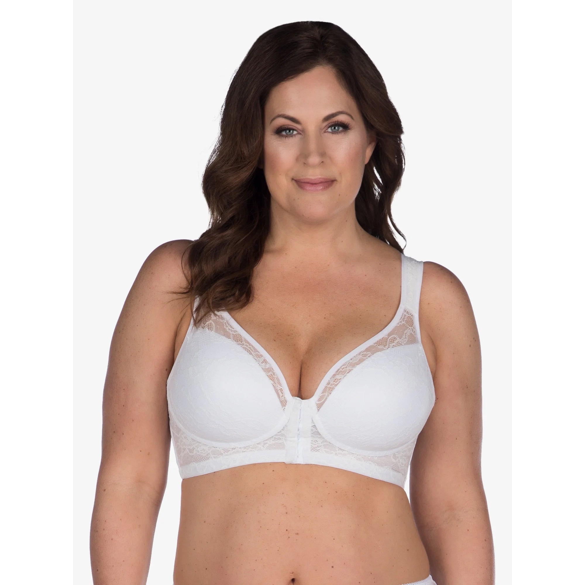 The Grace pairs breathable power-mesh posture support with a comfortable wireless design. Soft lace details and an easy front-closure make everyday wear simple, while lightly padded, contoured cups offer gentle lift and shaping.