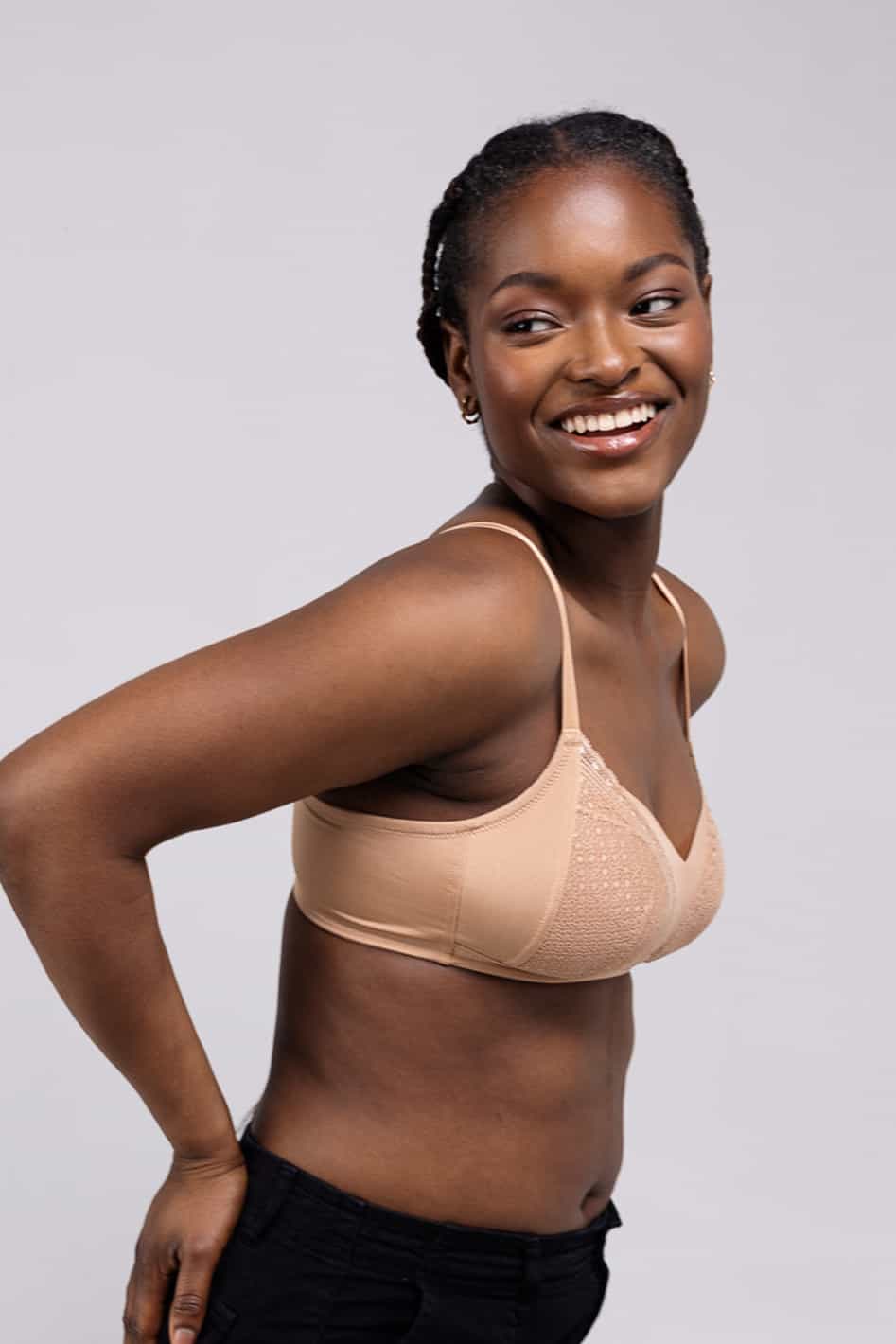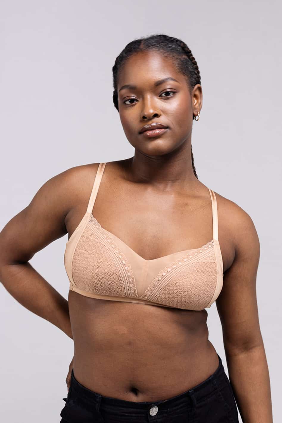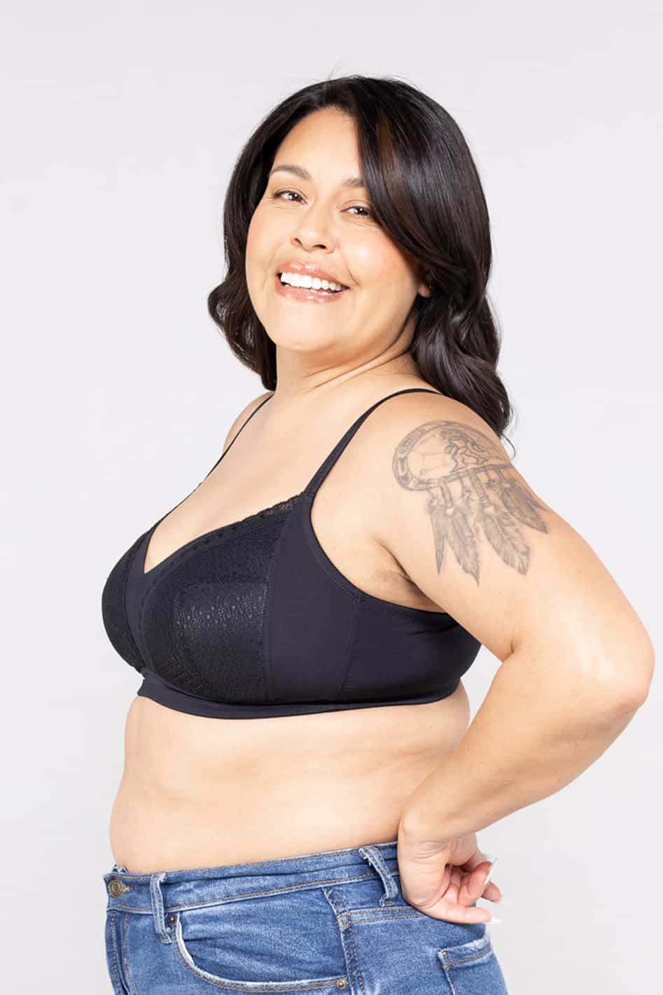 Leanne is made for larger band/smaller cups. It’s a lightly padded wireless bra that gives you some shape without pinching or digging.