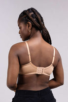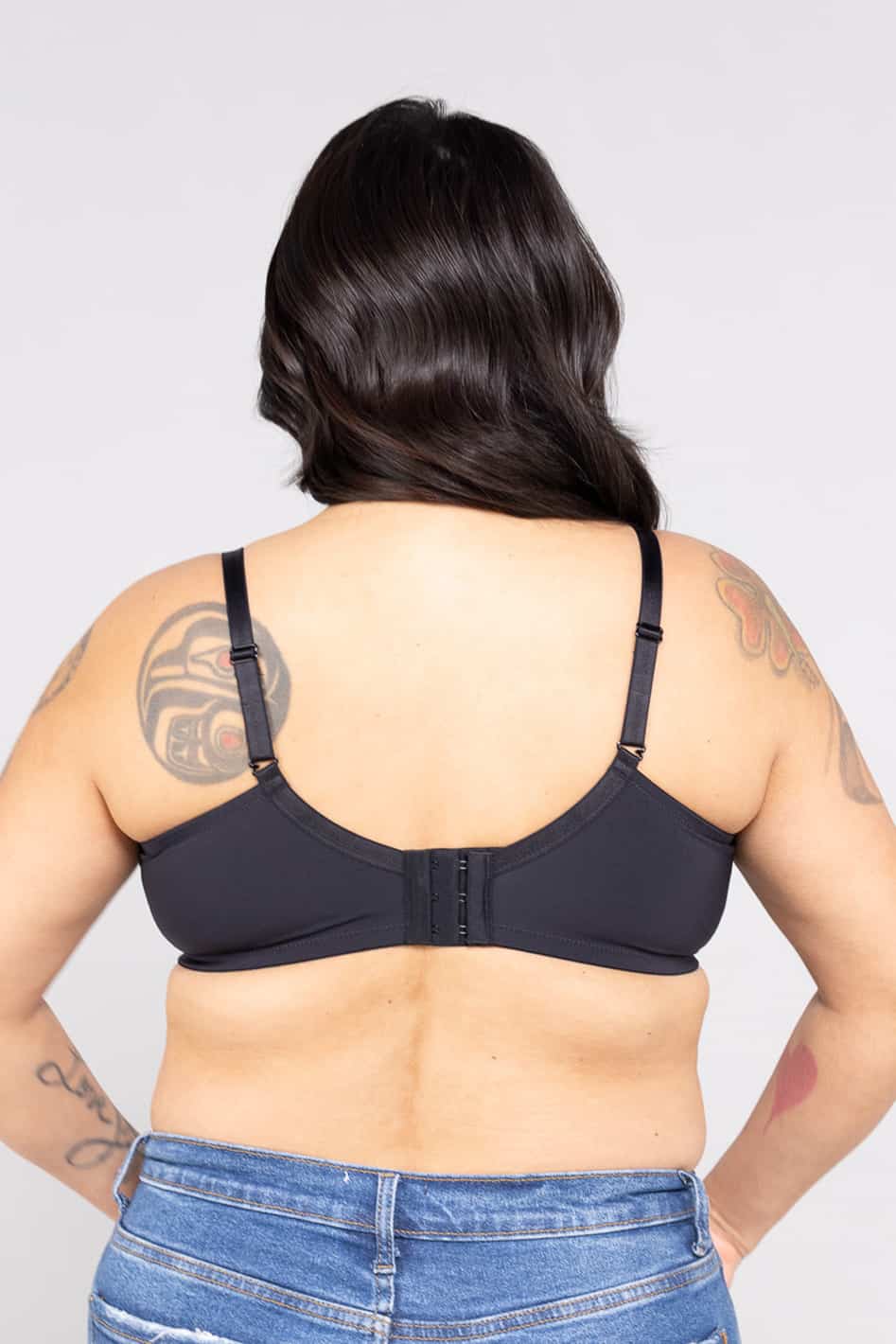 - No underwire, no side boning, no hardware except hook-and-eye closure