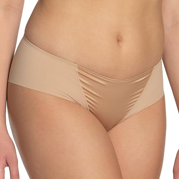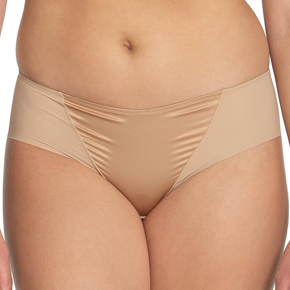 The Dominique Laser Cut Brief Panty 420 has a satin panel at front, a mid rise fit, laser-cut leg openings, and a center back seam. Dominique's Laser Cut Brief Panty is made of polyester, nylon and spandex.