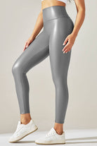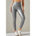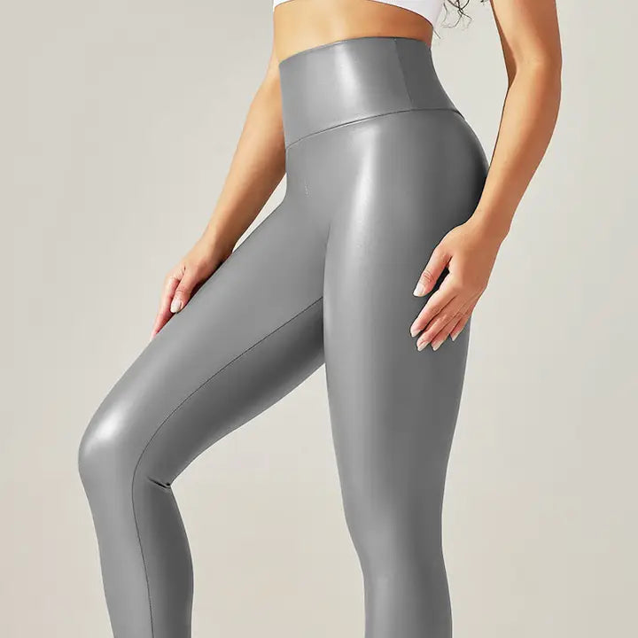 High waist faux matt leather skinny fit legging pants. Wide high waist band. 3" wide elastic band. Fitted style. Matt faux leather. Less shiny and stretch pu leather.