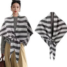 Elegant cashmere-blend shawl featuring classic stripes and a unique cross-front design for a stylish, secure fit.