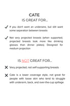 Cate is a non-padded, lightly lined lace bra/bralette hybrid that follows your natural shape