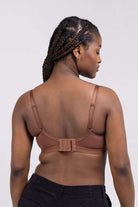 - No underwire, no side boning, no hardware except hook-and-eye closure