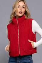 FABRIC: CORDUROY 100% POLYESTER - new arrivals, active basic, active usa, trending, corduroy vest, winter vest, warm, zipper vest, inner fur, essential, cabin, must have, must-have