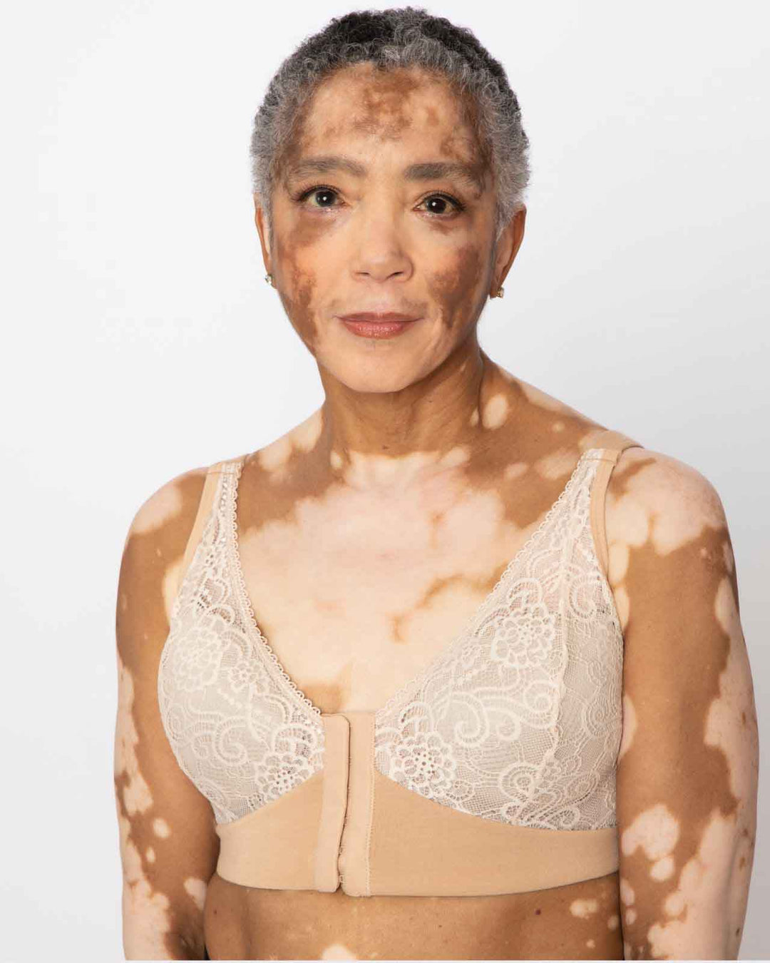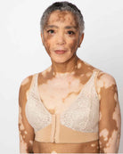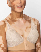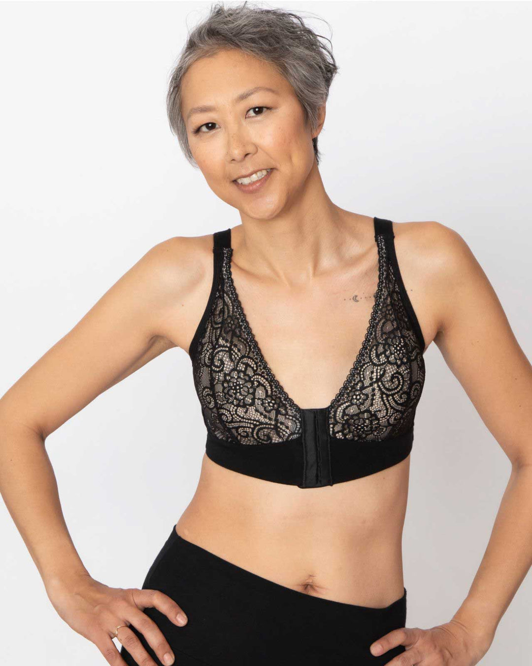 - A lace front closure bra makes it easy to slip in lightweight breast forms or prostheses if you desire a more balanced look