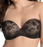 Plus Size Strapless Lace Bra. 7 ways to wear this strapless bra . Featuring smooth lace cups . Underwire cups has cushion band for added support . Stay put silicone lining. 4 Row hook and eye and compressed foam pad to hold the shape.