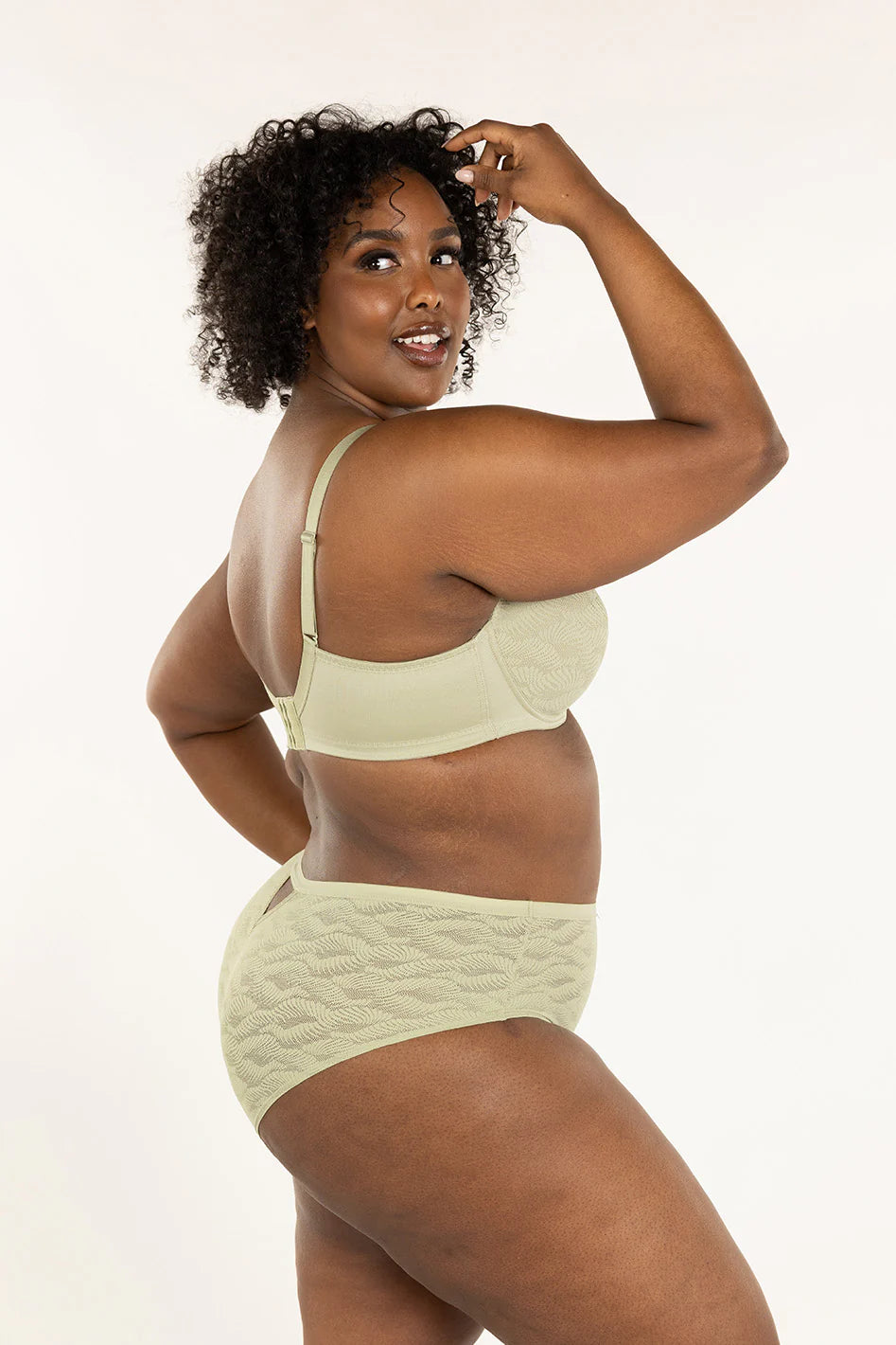 A comfortable bra with a flattering teardrop shape and "l can't believe this has an underwire" feel. Moderate nipple coverage.