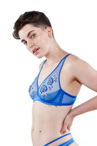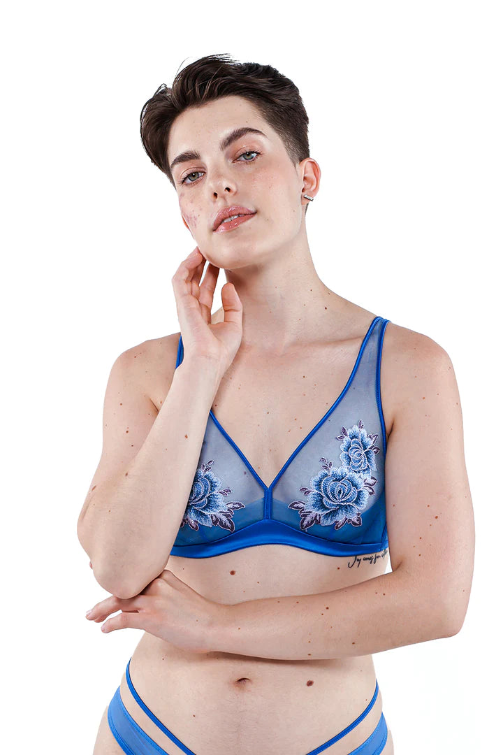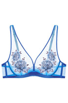 Inspired by night blooming flowers, this delicate sheer bra features dramatic embroidery and comes in three retro shades.