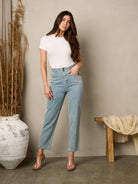 ELASTIC WAIST BUTTON CLOSURE DENIM